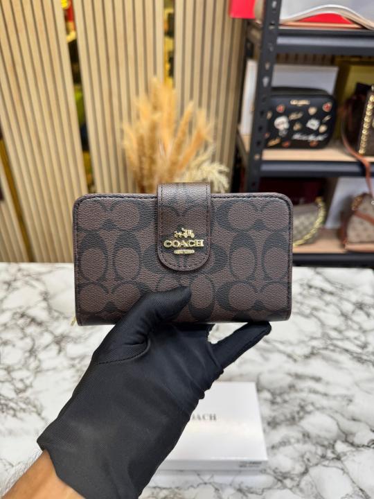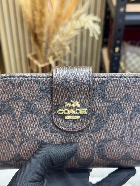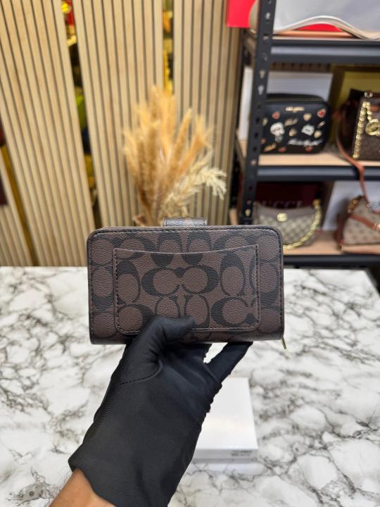 Coac_h Signature Monogram Zip Wristlet Wallet Premium Quality With Box (Brown) (AAA3029)