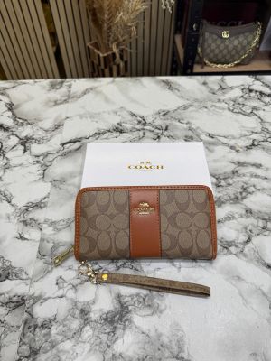 Coac_h Signature Monogram Zip Wristlet Wallet Premium Quality With Box (Brown) (AAA3029)